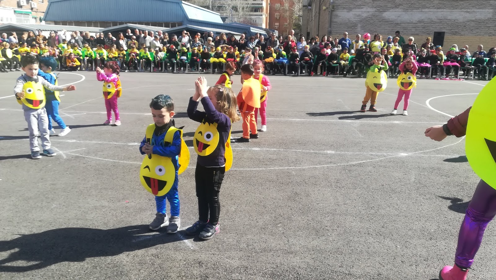 Empezamos la semana con el Carnavalito. El lunes trajimos un zapato de cada color, el martes la cara pintada y el miércoles, algo en la cabeza. Estos días recibimos la visita de Don Carnal. Un payaso bastante simpático que nos hacía reír todas las mañanas. jajajajajaEl jueves por fín llegó el desfile de Carnaval. Nos disfrazamos de emoticonos rockeros, nos pusimos el pelo de colores y bailamos a ritmo de Rosendo. Lo hicimos genial y los papis y las mamis nos aplaudieron muchísimo!!!!!